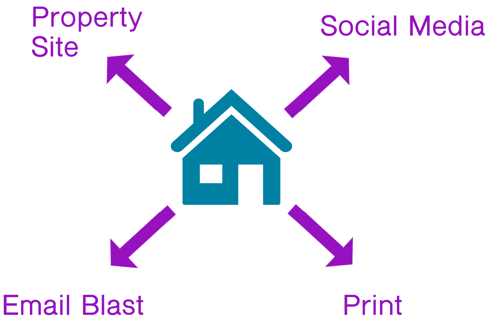 Property sites, social media templates, and marketing collateral are auto populated the moment the materials are uploaded.