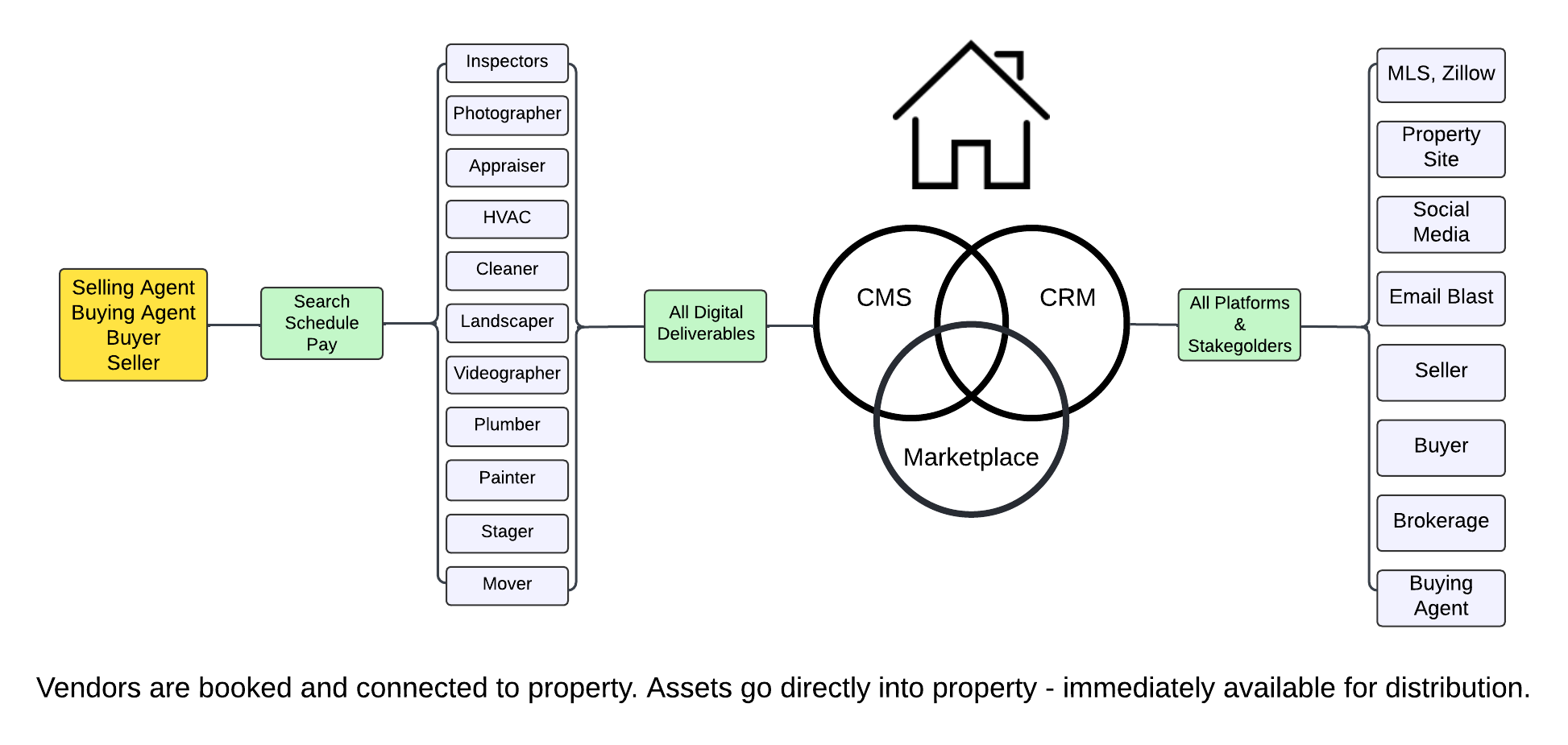 The real estate industry is in desperate need of a cohesive, centralized system: not just another tool that fixes one small inefficiency while leaving the broader process fragmented. The current landscape is flooded with CRMs, scheduling platforms, marketplaces, and AI-powered lead generation tools, yet these systems do not work together, leaving agents, vendors, and clients to juggle multiple disconnected platforms.